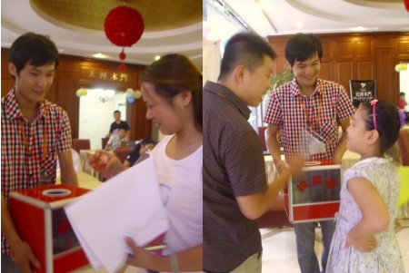 下午2点30分、活动如期开始。每一个到店的客户都有店庆红包一份,并且还能免费获得一次抽奖的机会